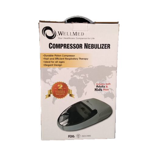 Compressor Nebulizer Machine (WellMed) Piston Type With Complete Kit - 02 Year Warranty 7 l/min flowrate for fast and effective therapyReliable drug therapy for up to 12 months if your Side...